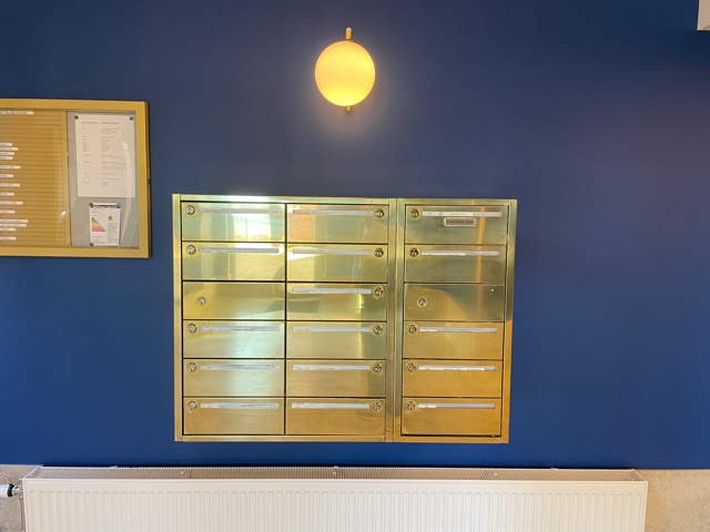 Namnskylt på brevlåda, informationstavlan och på tidningshållaren får du inte sätta upp själv.